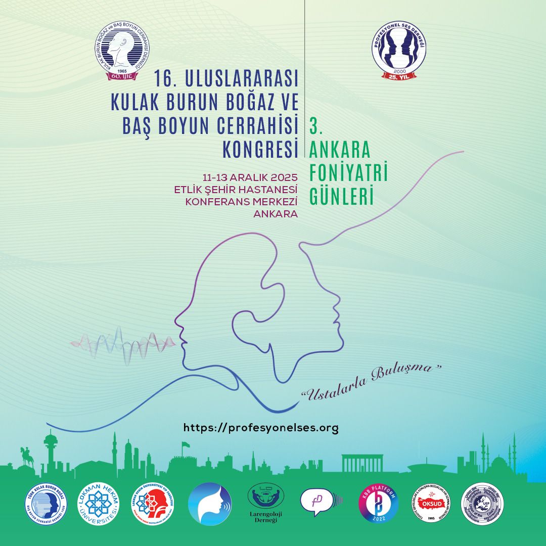📣 16. Uluslararası KBB & Baş-Boyun Cerrahisi Kongresi ve 3. Ankara Foniatri Günleri